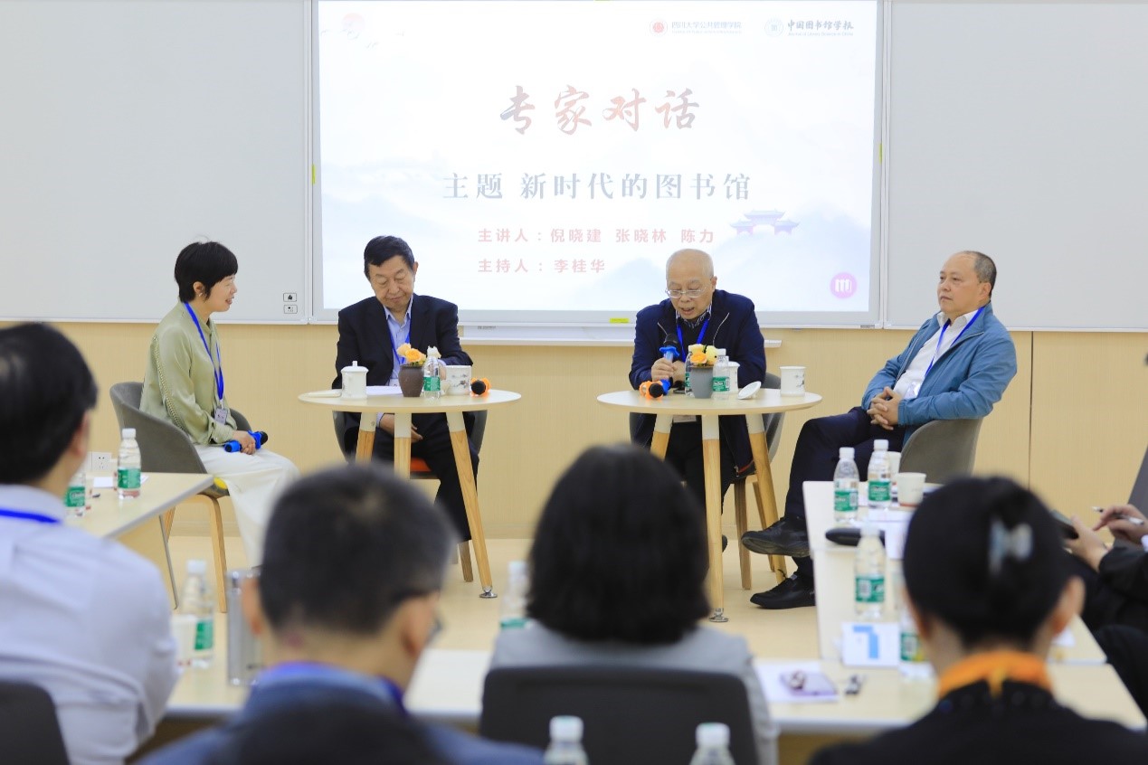 第一场专家对话以“新时代的图书馆”为主题,由首都图书馆原馆长倪晓建教授,中国科公司文献情报中心原主任、上海科技大学图书信息中心张晓林教授,国家图书馆原常务副馆长、太阳成集团tyc234cc历史文化公司陈力教授共同开启,太阳成集团tyc234cc李桂华教授主持。陈力教授针对图书馆学多年的发展变化及其对推动图书馆事业发展所发挥的作用,指出图书馆学领域存在理论研究落后于实践、理论和实践脱节两个问题;面对新技术变革,图书馆学领域需要思考怎样将图书馆传统优势与技术进步相结合,以及怎样进一步发展自身,并指出图书馆在未来变革中应扮演重要参与者的角色。张晓林教授指出图书馆现有困境实为“自困”,多倾听业界和学界的多样化声音是进步的基础;创新是发展的题中应有之义,而理论知识常青的根本在于找到实践这个“根”,要避免脱实向虚倾向和功利性学术导向。倪晓建教授从20世纪70年代以来图书馆历经挑战的演变谈起,从技术、用户素养和图书馆制度建设三个角度总结图书馆发展历程,指出公共文化空间建设、文旅融合、高品质和高质量的服务可能孕育着图书馆的发展机遇。