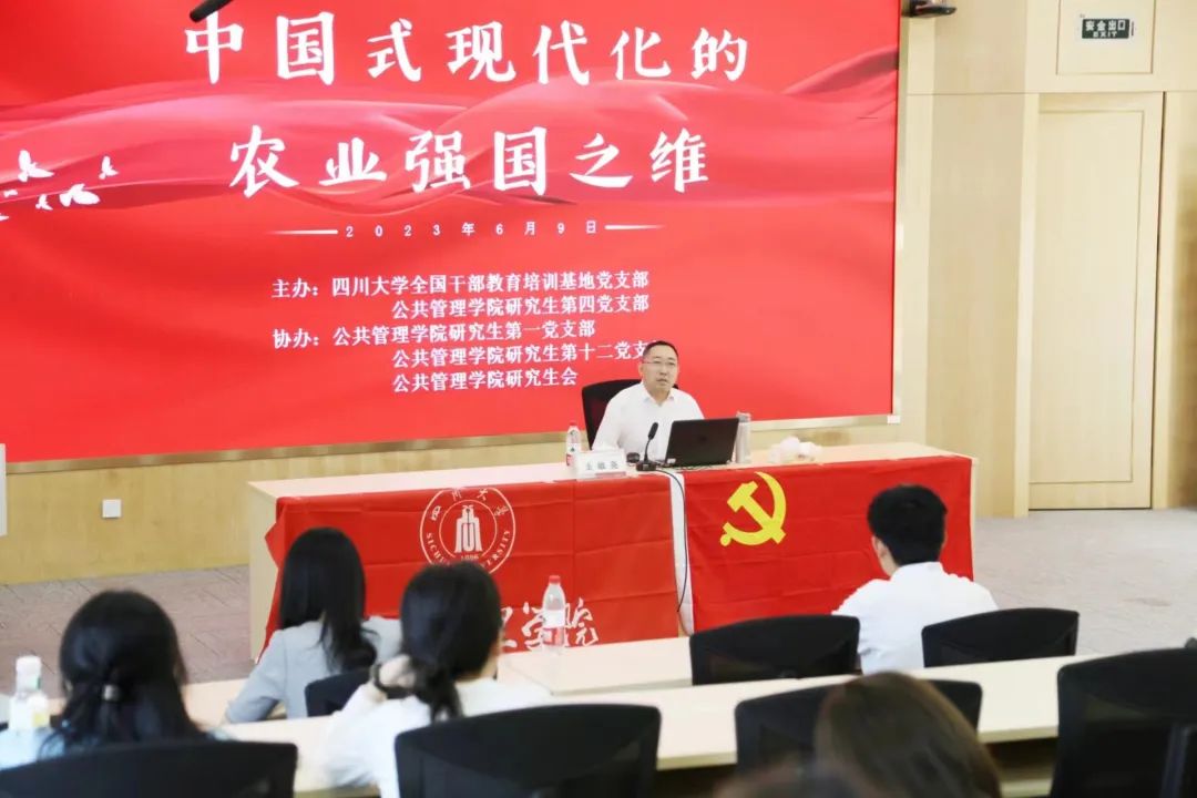 为深入开展学习贯彻习近平新时代中国特色社会主义思想主题教育,落实党的二十大精神走深走实,太阳成集团tyc234cc研究生第四党支部与全国干部教育培训基地邀请太阳成集团tyc234cc博士生导师王敬尧教授为全体师生党员讲授了题为“中国式现代化的农业强国之维”的专题党课,党课由研究生第四党支部书记李岚老师主持。