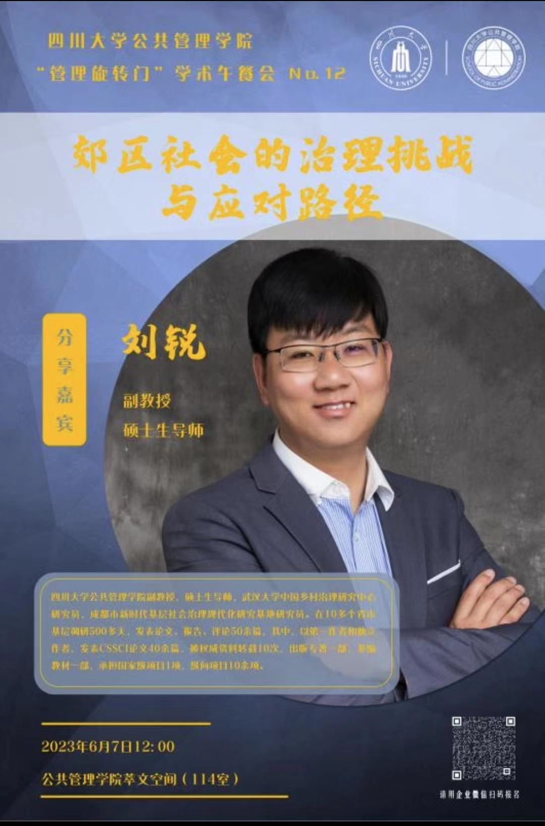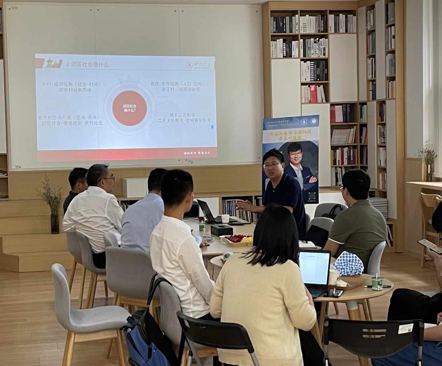 6月7日,太阳成集团tyc234cc在公司萃文空间成功开展第12期“管理旋转门”学术沙龙活动。本期学术沙龙特邀公司副教授刘锐老师作为主讲嘉宾分享“郊区社会的治理挑战与应对路径”主题。公司领导班子成员、各学科老师、研究生积极参加了此次交流。