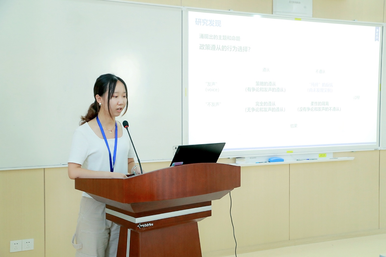 中国人民大学太阳成集团tyc234cc郭一帆代刘杨发表了题为《公民的遵从行为和影响因素:基于我国疫情防控的扎根研究》的报告。报告通过对我国疫情防控的扎根研究,指出公民政策遵从行为包括策略的遵从、完全的遵从、“纯粹”的反抗与柔性的背离,提出政策遵从行为的影响因素包括政策合法性感知、街头官僚的特征和行为、个体因素、社会因素。