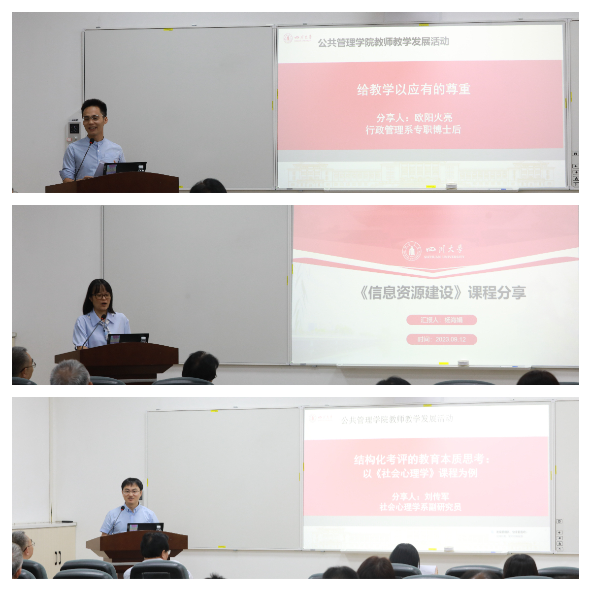 9月12日下午,公司在萃文楼105博文厅举办 “立德树人工作坊” 第一期活动。本次教师教学发展活动面向全校师生,以青年教师本科教学经验分享交流为主题,活动由袁莉副经理主持,公司行政管理系欧阳火亮、信息资源管理系杨海娟及社会学与心理学系刘传军3位青年老师进行分享,共100余名师生参加交流会。