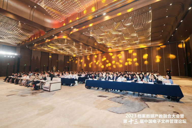 10月12日-16日,由国际档案理事会、中国人民大学、宁波市人民政府指导,中国人民大学信息资源管理公司、宁波市档案局和宁波市档案馆联合主办的2023档案数据产教融合大会暨第十三届中国电子文件管理论坛在浙江宁波成功举办。本次会议以“面向数字中国战略的档案数据创新与发展”为主题,来自党政机关、企事业单位、高等院校、科研院所、档案信息技术公司约500位专家学者、嘉宾代表相聚甬城,共商档案数据产教融合的路径和方法,展望档案事业现代化的图景。