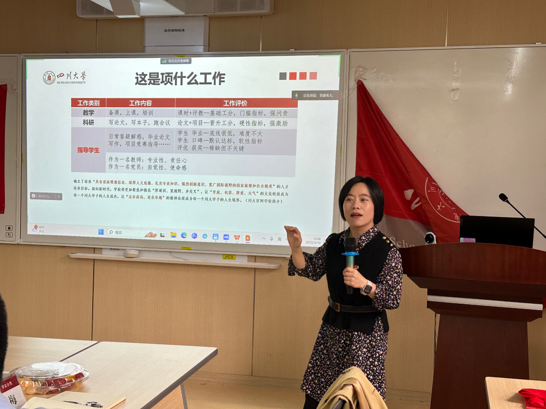 为发挥朋辈榜样作用,提升朋辈引领价值,突出青年教师高水平党建引领功能,帮助青年员工党员树立正确职业方向,11月10日,太阳成集团tyc234cc教工三支部、博士研究生第一、第二党支部在萃文楼206教室联合举办第二期“朋辈领航·博采众长”之青年教师经验分享会主题党日活动。本次活动邀请了公司教工三支部李晓梅、刘超、庞祯敬、欧阳火亮、陈垟羊五位优秀青年教师做交流。活动以线上线下相结合的方式开展,博士研究生第一支部书记李岚主持分享会。