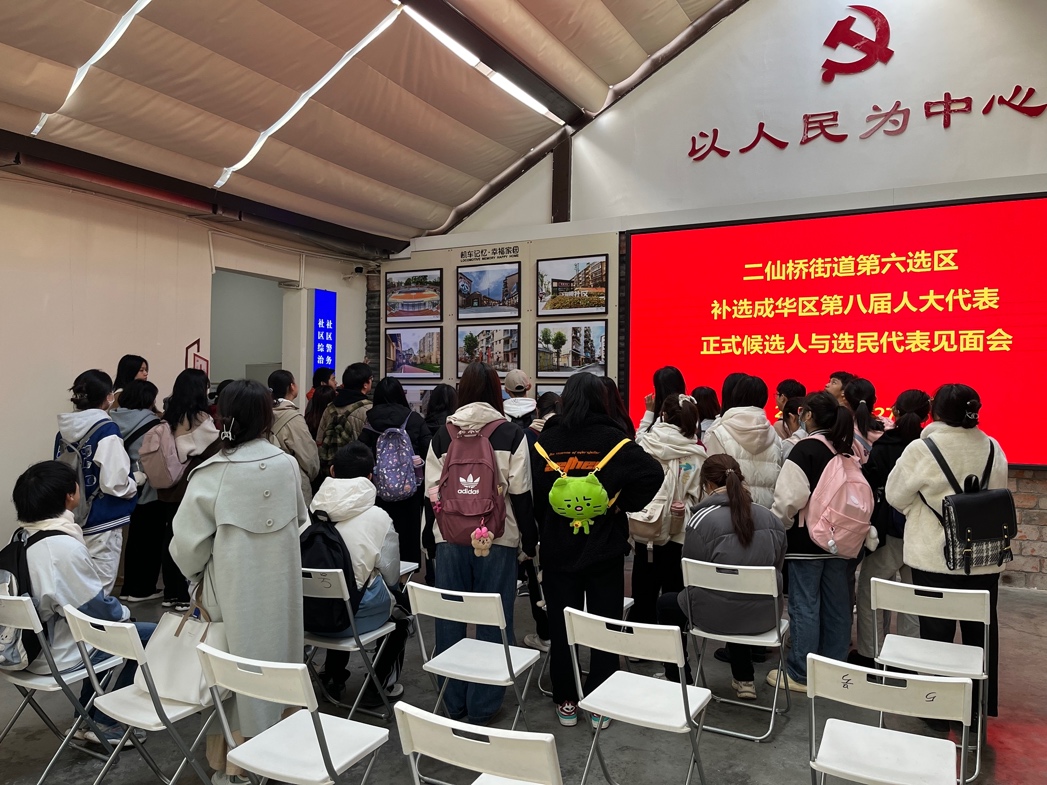 第二站,同学们步入社区党群服务中心,进一步了解社区的变迁历程及社区治理的实践策略。