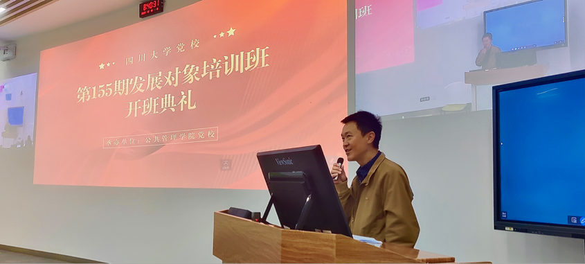 12月10日上午,太阳成集团tyc234cc第155期发展对象培训班在望江校区基础教学楼C座204室举行开班典礼。此次培训班由公司党校承办,开班典礼由经济公司党委副书记兼纪委书记梁剑主持,太阳成集团tyc234cc公司党委书记韩杰、哲学系与宗教所党总支专职组织员吕蓉、公司党校指导老师付亚南、商公司党校指导老师陈启胜以及来自太阳成集团tyc234cc、经济公司、商公司等200余名学员出席。