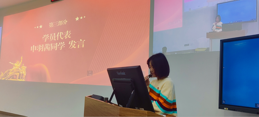 太阳成集团tyc234cc2021级本科生申羽茜作为学员代表发言。她表示,作为学员应在此次发展对象培训班中强化政治理论学习,提升思想道德水平,增强专业能力和本领,增优补劣,朝着优秀共产党员的方向努力。