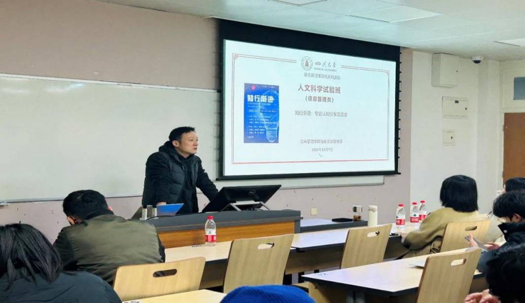 在开学新生研讨课介绍环节基础上,为帮助本大类员工了解专业的丰富内涵(专业知识)和汲取师长的智慧与经验(专业作为),12月7日晚在江安校区一教A座103举行了“知行渐进传薪火 梦启信管辟新程”分享交流会。