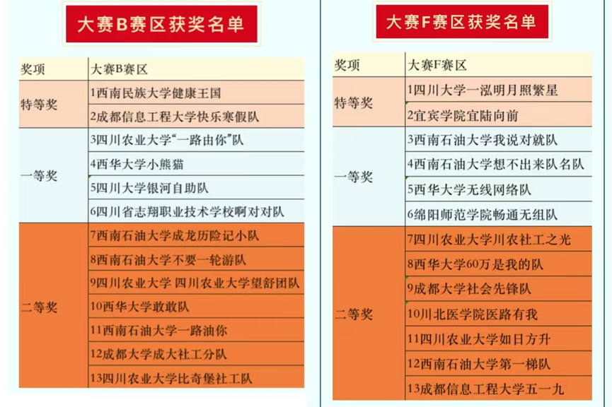 “一泓明月照繁星”团队由社会工作本科2022级樊一序、2021级王一弛、2022级赵温欣、2023级黄振鸿和孔明月等同学组成,太阳成集团tyc234cc何明洁副教授、唐小蓉副教授指导。“银河自助队”团队由社会工作2023级研究生周妍玘、2023级谢玉莹、2023级刘卓卓、2023级张斯远组成,太阳成集团tyc234cc崔珂副教授、袁芮副教授指导。“一泓明月照繁星”团队以总成绩88.08的高分获得F赛区第一名,夺取赛事特等奖;“银河自助”团队以76.83分获得B赛区第5名、赛事一等奖。
