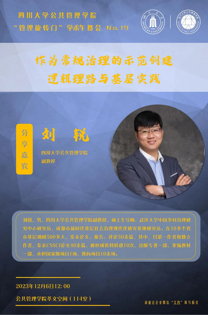 刘锐老师围绕“示范创建基层实践”主题展开分享,从“新时代的治理转向、群众生活治理的需要、基层治理能力不足”三方面切入,梳理新时代基层治理创新的体系特征和实践路径,分析典型地区示范创建过程及后果,就示范创建的要素多样性和联结复杂性进行说明。