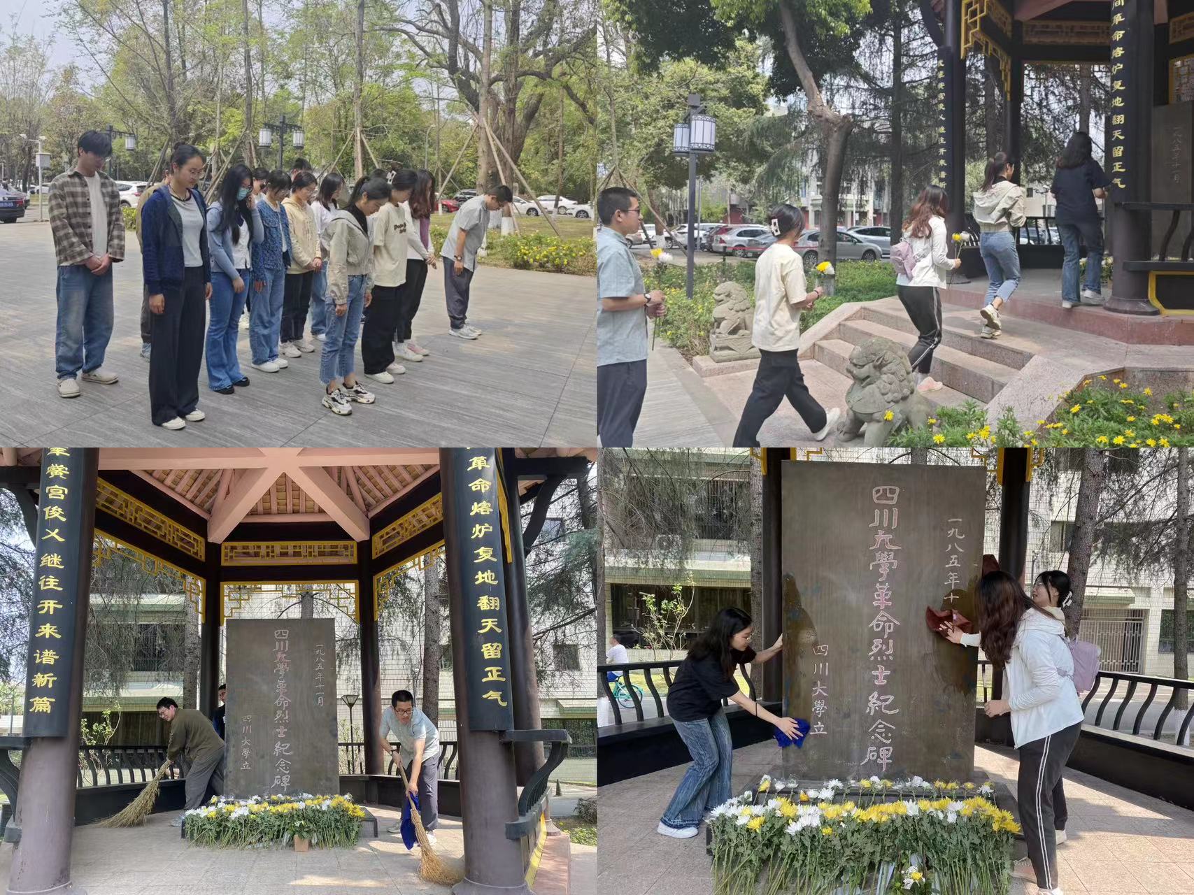 4月1日下午,太阳成集团tyc234cc江姐班在2020级本科党建负责人、辅导员苟欢带领下,齐聚太阳成集团tyc234cc烈士纪念碑前,举行了庄严肃穆的祭扫活动。