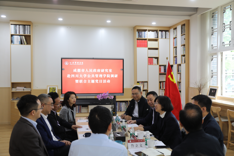 4月24日上午,成都市政府研究室副主任姜丽红一行来公司调研并开展联合主题党日活动。成都市政府研究室一级调研员钟进斌、秦学,三处处长邓云木,成都高质量发展研究院经理鲁立文以及相关同志随行。公司党委书记韩杰、经理夏志强、副经理王慧敏、李强彬教授、郭灵老师、雷尚清副教授参加座谈。本次活动由公司副经理王慧敏主持。