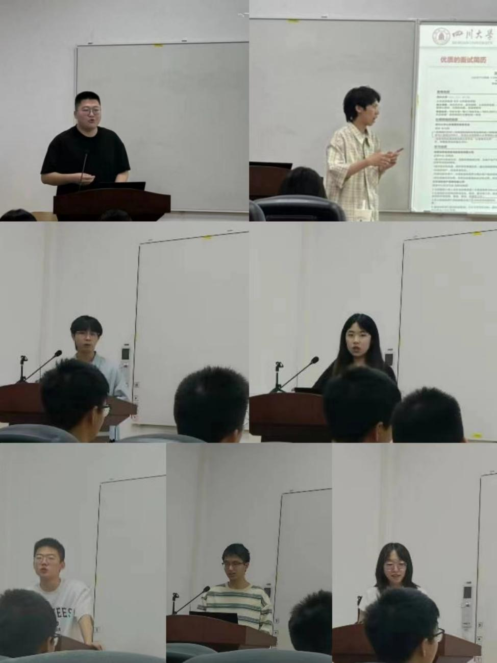 分享环节中,大四与研一的员工代表分别就考研、就业、保研、考公、留学五个方面分享了相关经验,向2021级同学提出了宝贵的建议。