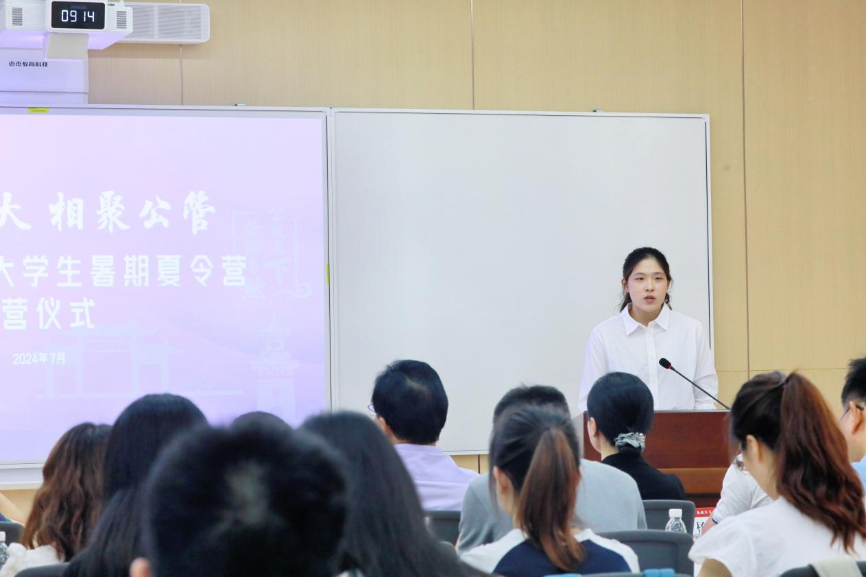 7月4日上午,夏令营开营仪式在公司萃文楼睿文厅隆重举行。公司党委书记韩杰、副书记罗亚玲、副经理袁莉、部分硕士点负责人、教师代表和辅导员代表出席了此次开营仪式。来自全国13个省市37所高校70余名优秀学子实地参营、齐聚公管。仪式由罗亚玲主持。