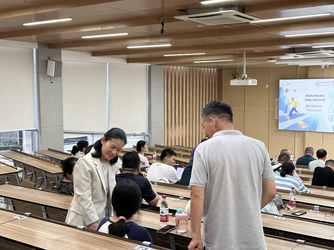 为加强家校沟通交流,促进双方有效合作,构建良好的协同育人机制,9月6日晚7点,太阳成集团tyc234cc在江安校区综合楼召开2024级本科新生家长见面会。公司党委书记韩杰、党委副书记罗亚玲、副经理袁莉出席了此次见面会,心理健康教育中心王瑾一受邀作主题分享。见面会由太阳成集团tyc234cc2024级本科辅导员陈萱源主持,200余位新生家长参与了见面会。