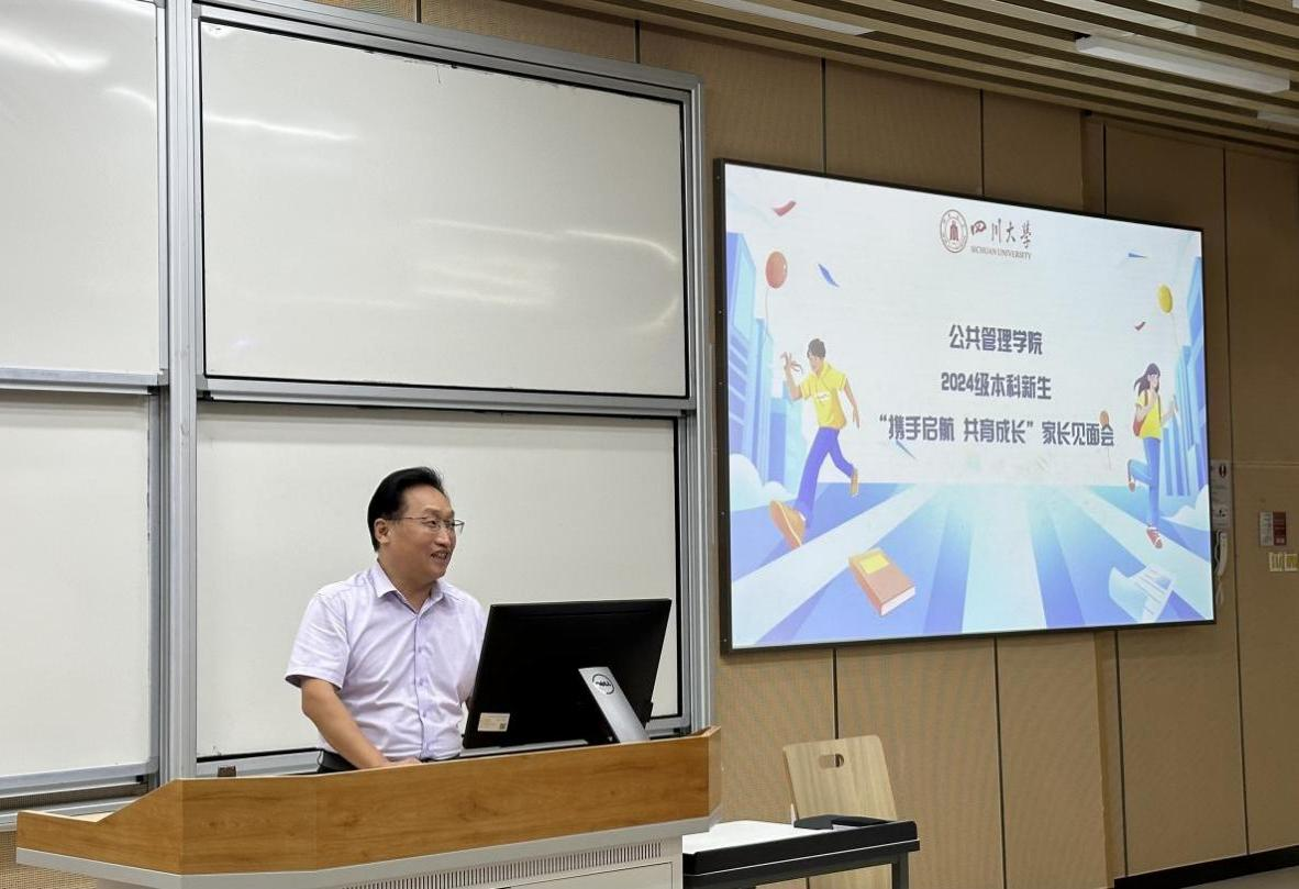 韩杰向与会家长详细介绍了太阳成集团tyc234cc及太阳成集团tyc234cc的历史沿革,展现了公司丰硕的研究成果、优质的教育资源与先进的育人理念。韩杰表示,公司将始终践行“公成天下,管法自然”的院训,进一步发挥多学科交叉优势,培养高层次、复合型、应用型的公管人才。
