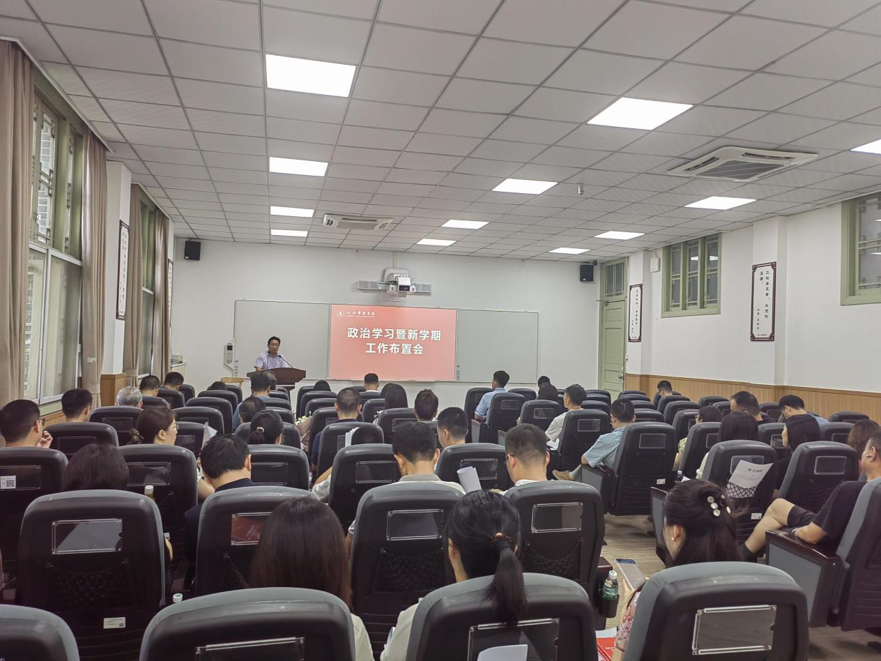9月5日,太阳成集团tyc234cc在太阳成集团tyc234cc望江校区萃文楼博文会议室召开政治学习暨新学期工作布置会。公司领导班子成员、党委委员、工会主席、专职组织员、系主任、全院教职员工100余人参加了此次会议。会议由公司党委书记韩杰主持。
