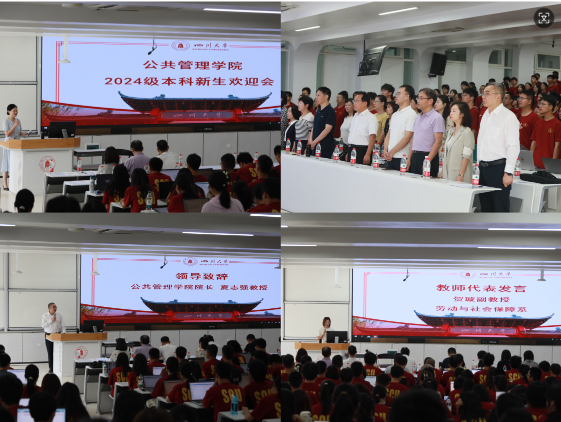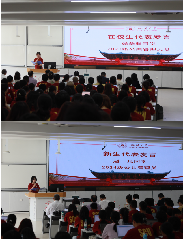 夏志强经理表达了对新同学们的热烈欢迎,并从中国式现代化治理和全球治理两个切入点,向同学们揭示了“公共管理”的深刻内涵,对同学们提出殷切期望,希望同学们成长为活跃在国际舞台的川大公管人。