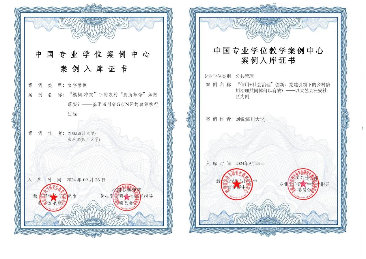 公司刘锐老师的《“信用+社会治理”创新:党建引领下的乡村信用治理共同体何以有效?—以大邑县汪安社区为例》、《“模糊-冲突”下的农村“厕所革命”如何落实?—基于四川省G市N区的政策执行过程》两个案例成功入库。