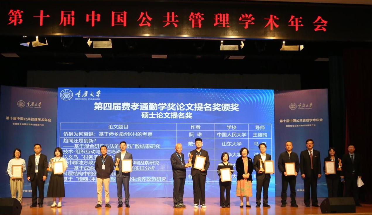 10月12日,第四届“费孝通勤学奖”颁奖典礼在重庆大学举行。继公司2020届硕士白浩然同学获得第三届“费孝通勤学奖”唯一优秀硕士学位论文奖(指导教师李晓梅)以来,杨舒雯、史军、郑冰鑫3位同学在本届评选中再创佳绩。