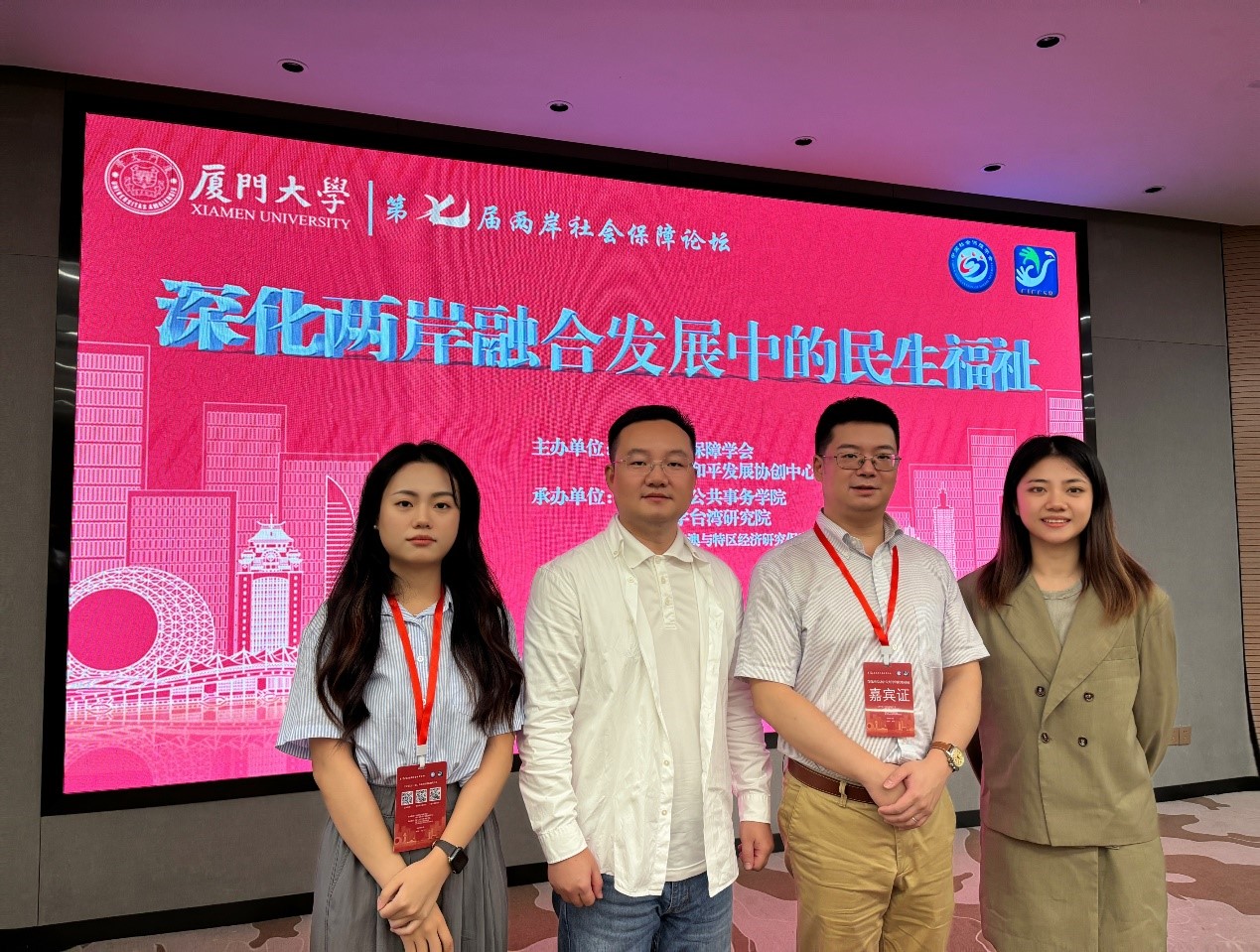 11月15-16日,由中国社会保障学会、两岸关系和平发展协同创新中心主办的“第七届两岸社会保障论坛”在厦门大学召开。本次论坛以“深化两岸融合发展中的民生福祉”为主题,旨在总结两岸民生领域融合发展、推进祖国和平统⼀进程中取得的经验,更好发挥社会保障在增进两岸同胞民生福祉、推动两岸融合发展中的作用。来自海峡两岸60多所高校、科研院所、医疗机构的近200名专家学者与会。公司劳动与社会保障系林熙副教授、杨帆副教授和硕士研究生薛雅方、李亚丹等师生参会。