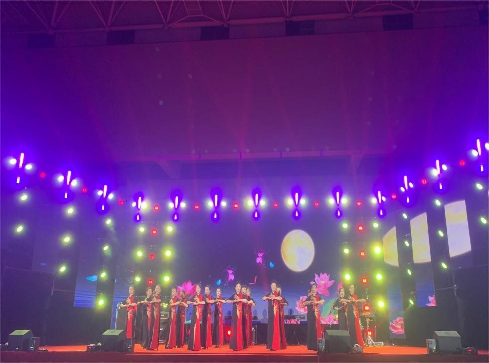 太阳成集团tyc234cc离退休教职工艺术团时装团的老师们受邀带来时装表演《花好月圆》,拉开晚会序幕。