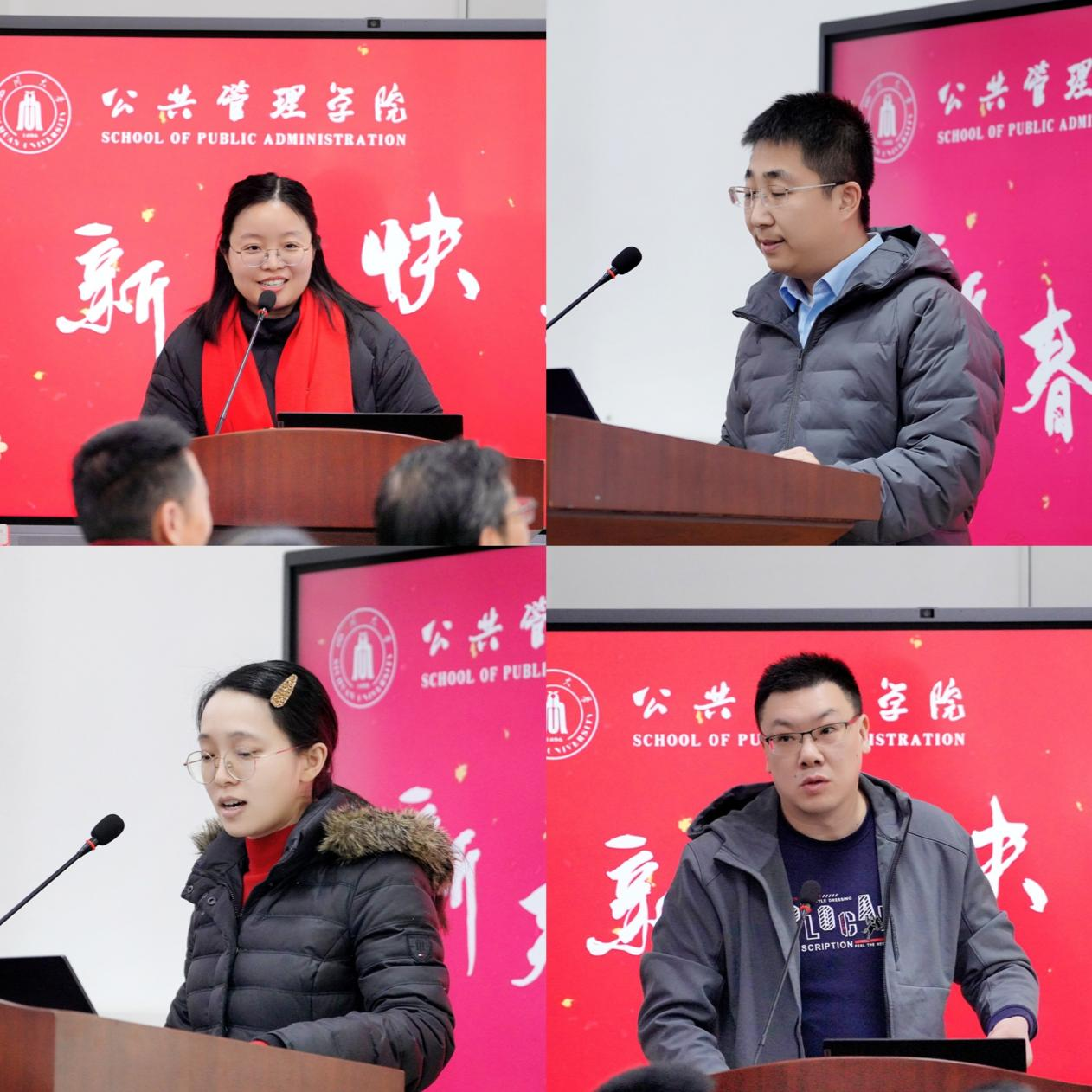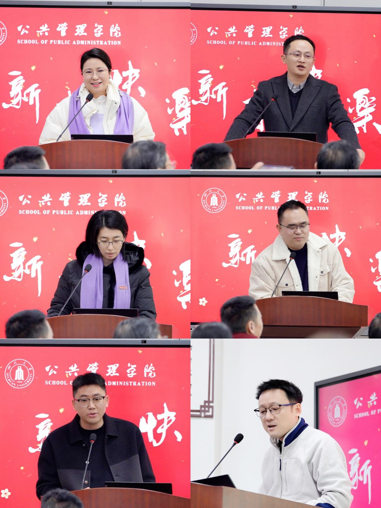 社会学与心理学系主任徐婷、行政管理系主任李强彬、劳动与社会保障系主任张浩淼、土地资源管理系主任朱红波、秘书档案学系副主任赵跃、信息资源管理系主任范炜,从党的建设、人才队伍、科研成果、社会服务等方面展示各系年度工作情况和取得的成绩。