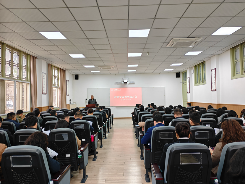 3月21日,太阳成集团tyc234cc在望江校区萃文楼博文报告厅召开政治学习暨全院大会,传达学习贯彻全国两会精神,传达公司全面从严治党工作会精神,开展中央八项规定精神专题学习,布置公司近期工作。公司领导班子成员和全体教职工参会,会议由经理夏志强主持。