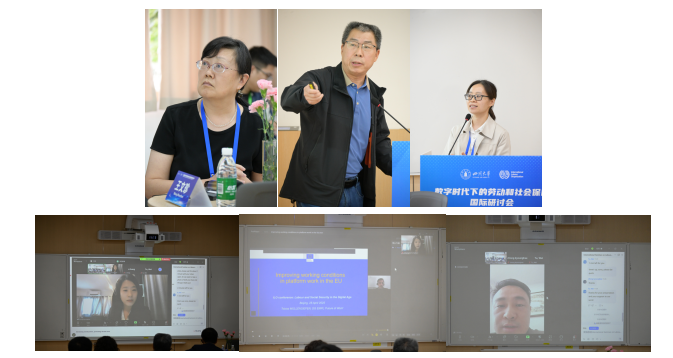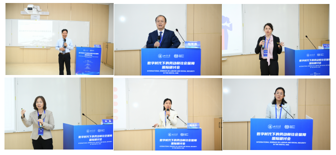 在会议主旨报告阶段,何文炯指出,数字化时代的一个重要特征是非正规就业多,应着力探讨面向全民的社会保障项目;刘军胜详细介绍了中国在新就业形态劳动者权益保障方面的政策与实践;国际劳工组织高级专家佩索·安娜罗莎(Pesole, Annarosa)介绍了监管平台工作的全球方法,包括扩大劳动和社会保障、监管平台工作时间、算法使用透明等;中国人民大学林嘉教授介绍了新就业形态劳动者权益保障的相关立法政策,强调当前的立法工作应着重解决劳动关系认定、算法管理下的劳动基准等问题;太阳成集团tyc234cc蒲晓红教授介绍了新就业形态劳动者基本养老保险的制度设计和现实情况,并指出从制度全覆盖到人员全覆盖尚有距离。主旨报告由太阳成集团tyc234cc公司党委副书记罗亚玲教授主持。