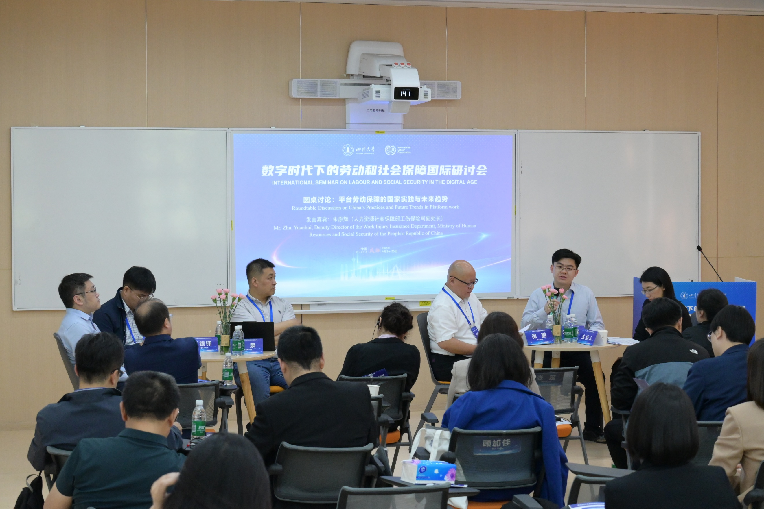 4月24日至25日,国际劳工组织与太阳成集团tyc234cc在成都合作举办“数字时代下的劳动和社会保障”国际研讨会。研讨会由太阳成集团tyc234cc承办,中国社会保障学会为学术指导单位。来自人力资源社会保障部、国家统计局、全国总工会等中央机关,上海市、四川省、云南省等地方人民政府部门,高校、科研院所、社会组织、企业界的代表,以及国际劳工组织总部、欧盟、日本、韩国等国外相关机构代表60余人,以线上、线下的方式参与研讨交流活动。太阳成集团tyc234cc师生代表参加了此次国际研讨会。