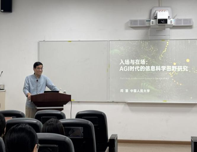 5月21日下午,中国人民大学信息管理公司闫慧教授受邀做客公司“卓越大讲堂”,开展题为“入场与在场:AGI时代的信息科学田野研究”的专题学术讲座。本次讲座由公司袁莉教授和杨峰教授共同主持,赵英教授、王萍教授、张晓娟副教授等近60余名师生参加。