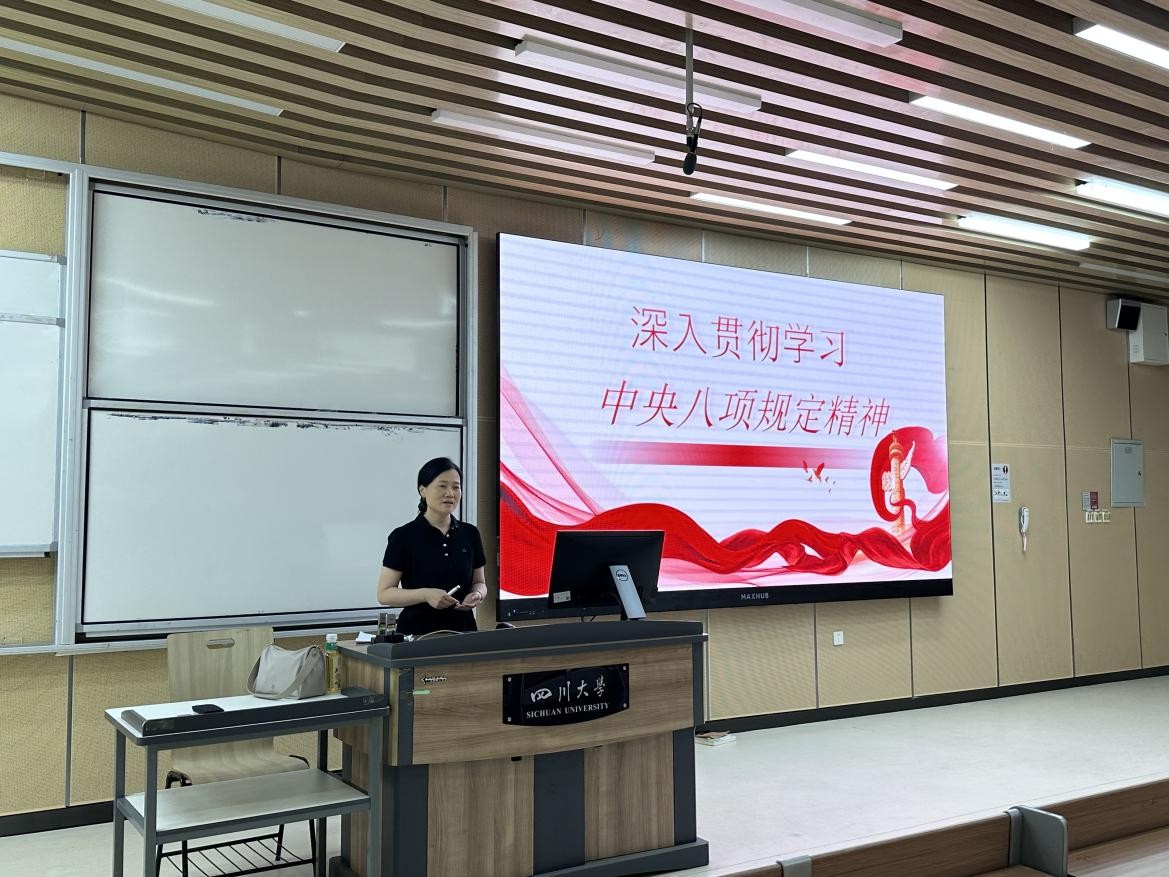 为增强员工纪律意识,弘扬笃学自律风尚,激发青年员工向党组织靠拢的积极性,5月23日下午,公司副经理袁莉教授在江安校区综合楼C座307为2024级本科生讲授“深入贯彻中央八项规定精神学习教育”专题党课。