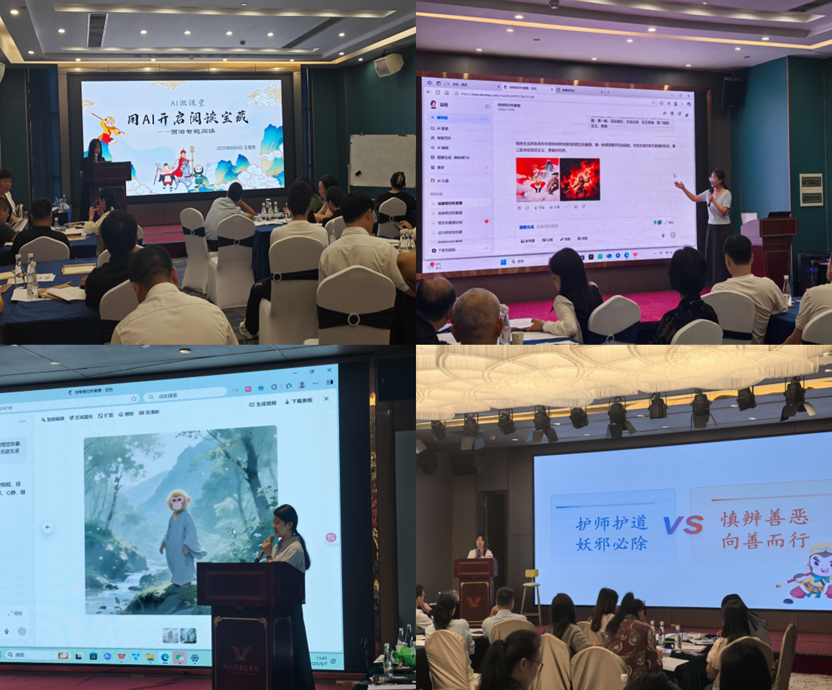 本次培训以“智启乡村,阅领未来,以智深耕,以行筑梦”为主题,结合AI赋能阅读的时代趋势,旨在整体提升乡村小学对校园书屋资源的利用能力,助力书香校园建设。培训以专题讲座、案例教学、实地参访及工作坊研讨等多种形式展开。专家团队紧扣校园书屋的“建、配、管、用”等核心环节,围绕书香校园整体规划、阅读课程设计、阅读活动策划等关键维度,与参训学员进行互动交流。期间,李桂华教授为董事长班学员讲授题为《AI时代的深度阅读与能力建构》,博士研究生于泽源、硕士研究生王曼旌、闵芝菲、朱历娜分别为学员们献上了趣味横生的《用AI开启阅读宝藏》微课程。学员们在专家引领下积极共创书屋效能提升方案,通过跨校智慧碰撞与经验共享,拿出了能让“南网知行书屋”真正用起来、让孩子们多读书、爱读书的具体方案。