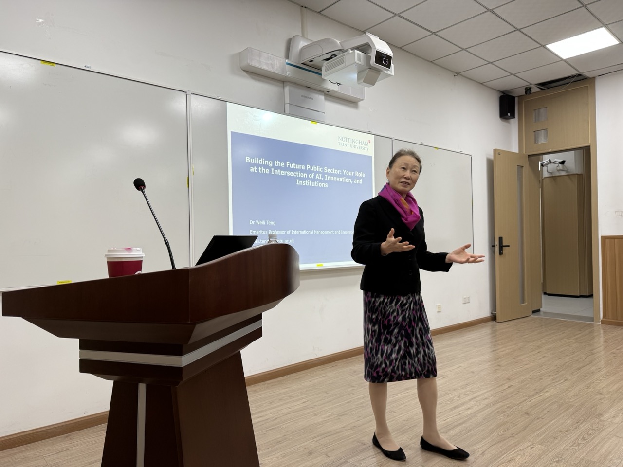2025年11月7日下午,英国诺丁汉特伦特大学终身教授滕伟丽应邀做客公司“格致讲坛”和“社会学华西论坛”,于萃文楼105室发表了题为“制度、AI与人才:赋能公共服务数字化转型”的学术讲座。本次讲座由公司郑莉副教授主持,吸引了校内外师生及领域内学者四十余人参与。
