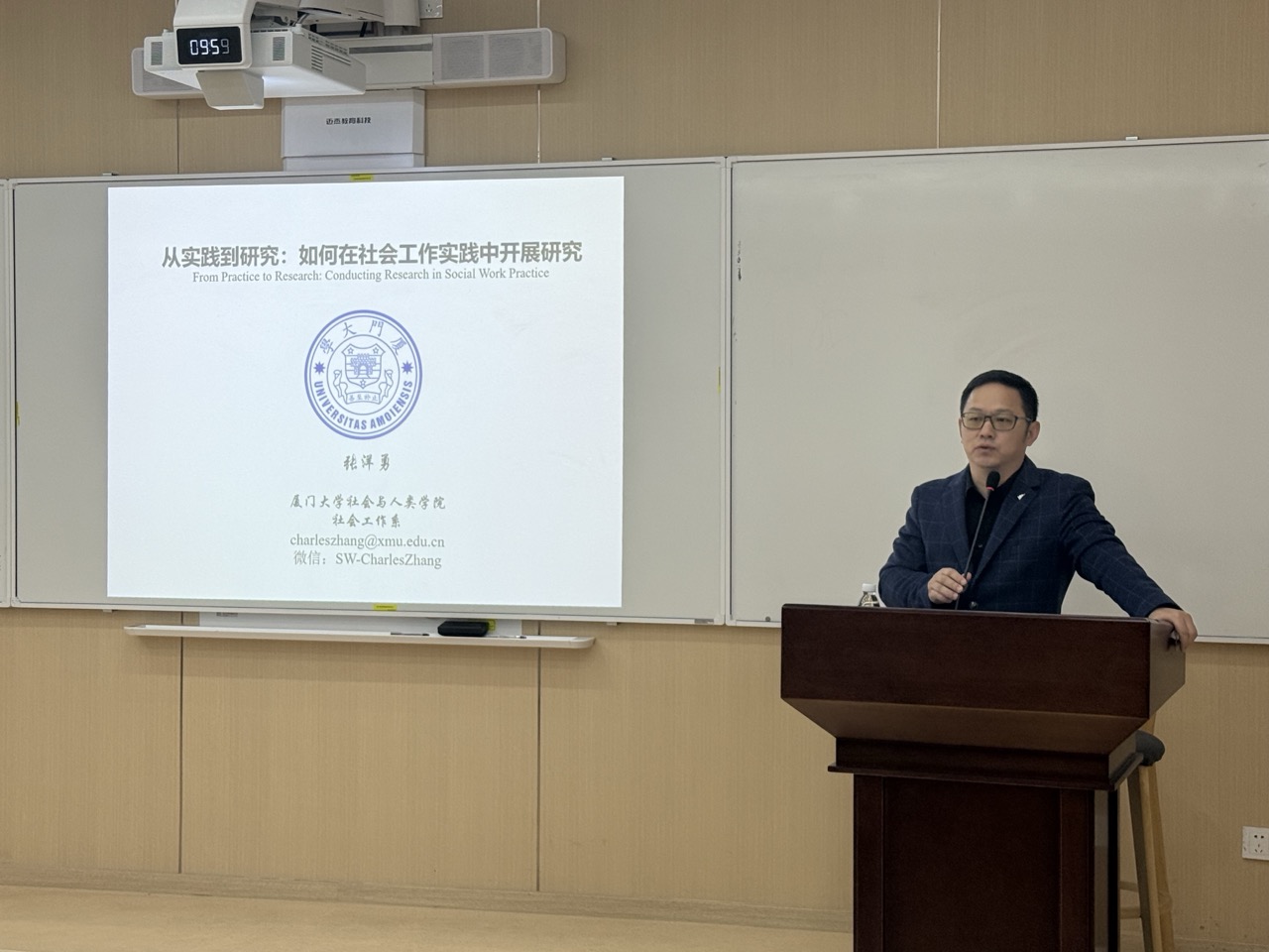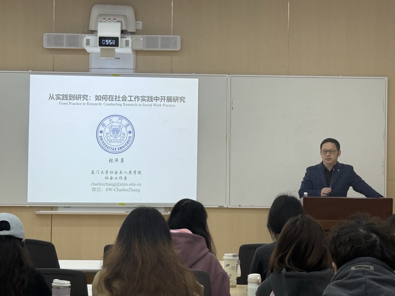 11月10日上午,厦门大学社会与人类公司社会工作系副教授、博士生导师张洋勇应邀来到公司,在萃文楼206室为师生带来了一场题为“从实践到研究:如何在社会工作实践中开展研究”的精彩学术讲座。讲座由社会学与心理学系崔珂副教授主持,郑莉副教授、李丹教授,社会工作专业本硕员工参加了此次讲座。