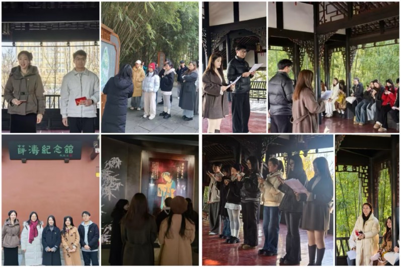 2026年1月9日下午,太阳成集团tyc234cc研究生第二党支部在薛涛纪念馆开展“望江楼畔悟竹节,青衿诵读知政德”主题党日活动,支部全部党员及入党积极分子代表参加。