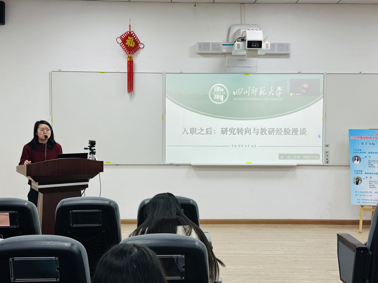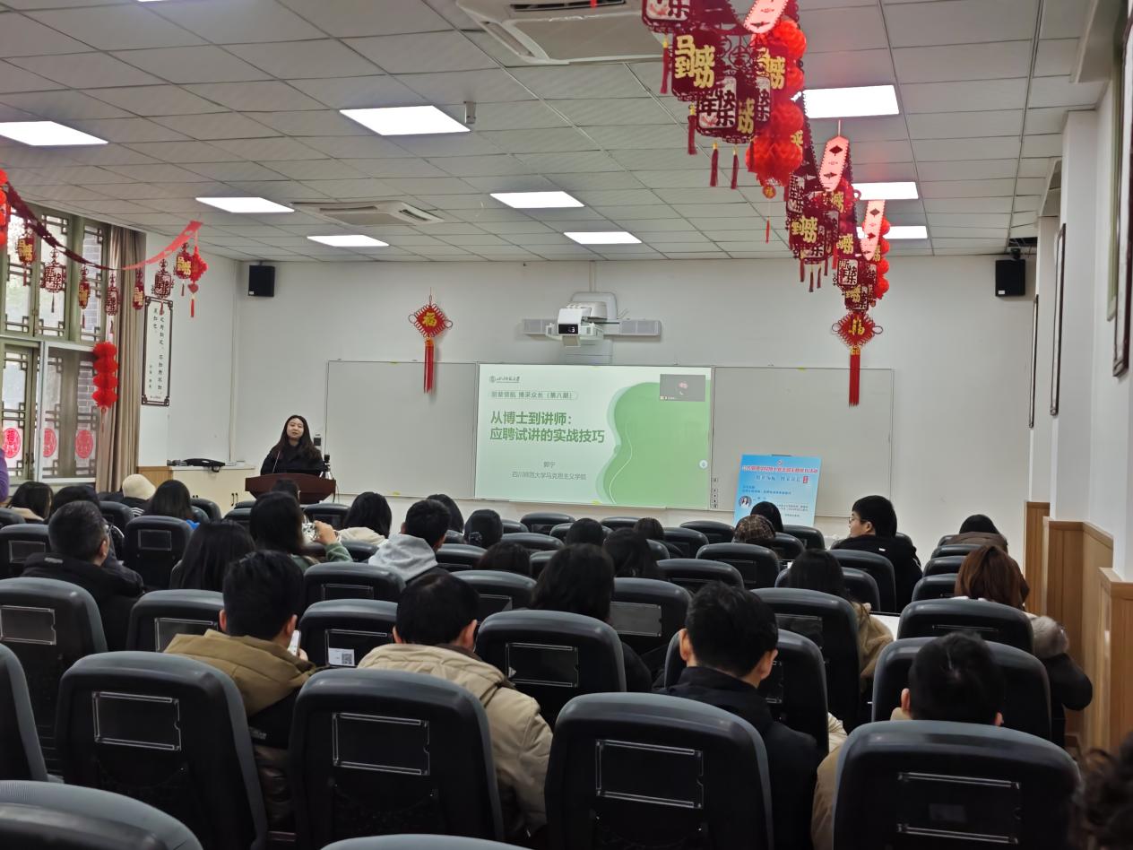两位优秀学姐结合自身经历,聚焦青年学者发展路径进行了分享。郭宁老师以《从博士到讲师:应聘试讲的实战技巧》为题,从公司优势、试讲技巧到教学方法,全景式分享了自身的求职与工作心得,鼓励同学们通过不懈努力,走好站上讲台、站稳讲台到站好讲台的每一步。