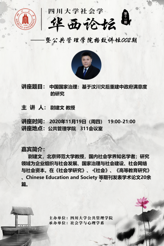 尉建文,北京师范大学教授,国内社会学界知名学者;研究领域为企业组织与社会发展、国家治理与社会建设、社会网络与社会资本。在《社会学研究》、《社会》、《高等教育研究》、 Chinese Education and Society 等期刊发表学术论文20余篇;主持国家社科基金、全国教育科学“十一五”规划、住房和城乡建设部、中国社会科公司、北京市科学技术委员会和北京市对口支援办公室等课题20余项;多项研究报告得到国家领导人和有关部委和省市领导批示。