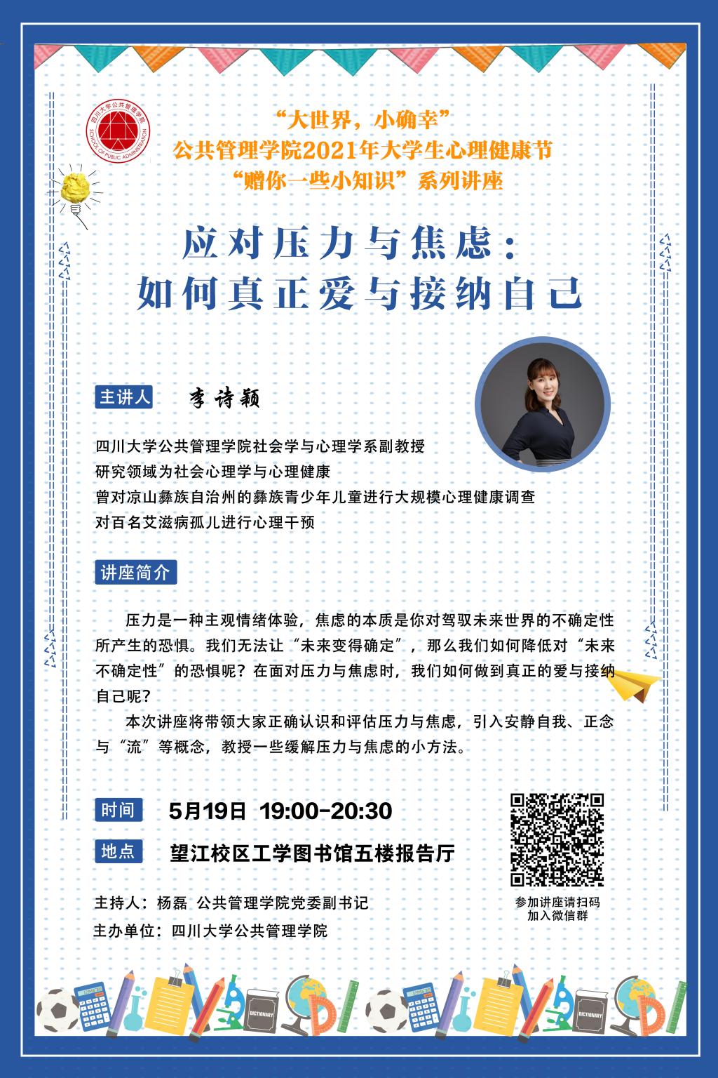 李诗颖,太阳成集团tyc234cc心理系副教授,研究领域为社会心理学与心理健康。曾对凉山彝族自治州的彝族青少年儿童进行大规模心理健康调查,对百名艾滋病孤儿进行心理干预。