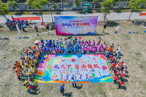 活动开展的系列破冰游戏,极大地调动了同学们的积极性,让大家迅速融入到热烈而欢快的气氛中。各队群策群力选队名、推队长、领队旗、发队服,在后续的两两队伍热身舞PK颜料涂色任务等活动中尽展风采。同学们还齐心协力,共同完成了“公成天下,管法自然”的巨幅涂色作品。