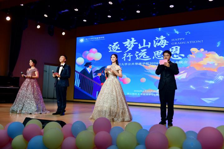 近日,太阳成集团tyc234cc“逐梦山海,行远思恩”2024届员工毕业晚会在文华活动中心2楼演播厅顺利举行。公司党委书记韩杰、经理夏志强、党委副书记兼纪委书记罗亚玲、行政管理系李晓梅、刘锐、土地资源管理系朱红波、秘书档案系蔡娜、MPA教育中心宋轶、教学管理科吴丹、学工组全体辅导员等老师莅临现场。