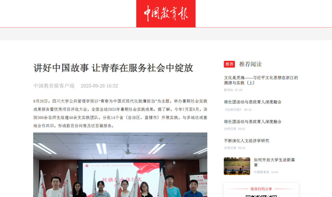 媒体关注 | 中国教育报:讲好中国故事 让青春在服务社会中绽放