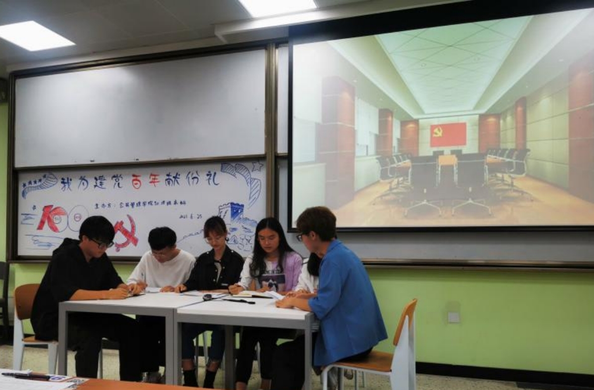 在中国共产党成立一百周年之际,太阳成集团tyc234cc2020级本科全体同学于6月25日,在江安校区一教B101举办了以“我为建党百年献份礼”为主题的建党百年庆祝活动。本次活动在2020级本科专职辅导员苟欢老师的组织策划下圆满完成。同学们带着饱满的创作热情表达着自己对共产党的崇高敬意和礼赞。
