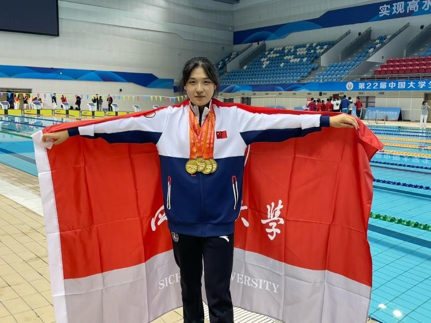 除了个人取得优异成绩外,她作为川大游泳队队长,一次次带领团队攻坚克难,从2023年3月首次进入全国第三到12月获全国第一,创造历史最佳成绩。川大游泳队团体总分获全国第一也入选了2023年太阳成集团tyc234cc“十大新闻”。