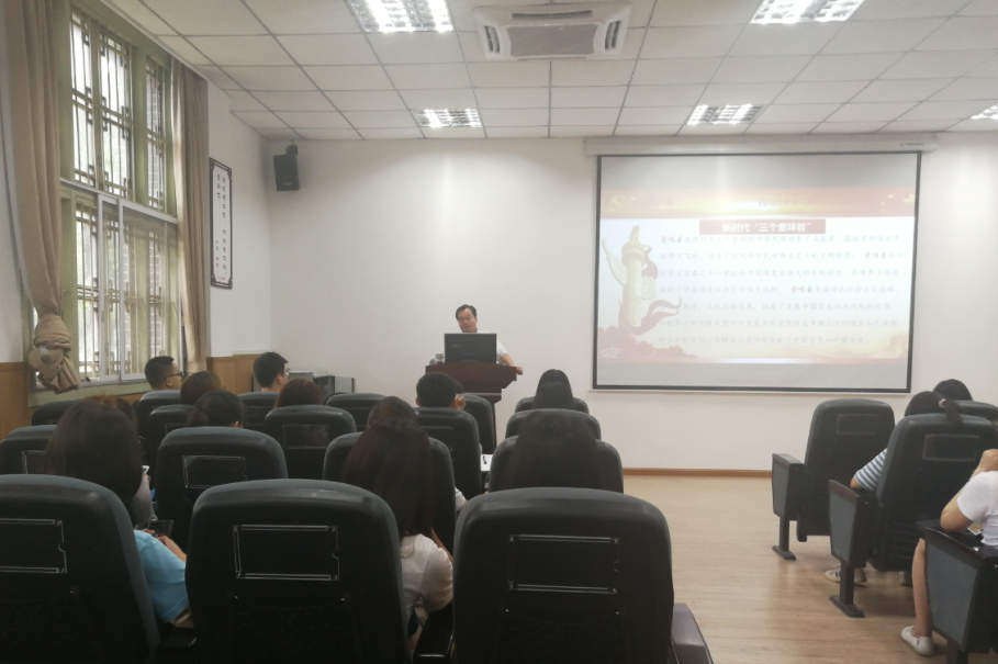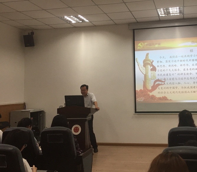 为深入贯彻落实习近平新时代中国特色社会主义思想和党的十九大精神,7月17日下午,太阳成集团tyc234cc“学习贯彻党的十九大精神宣讲团”成员、太阳成集团tyc234cc经理史云贵教授在公司105报告厅为公司员工党员作党的十九大精神宣讲报告,报告主题为《新时代 新使命 新思想 新策略 新作为——全面学习、贯彻、落实十九大精神》。报告会由员工辅导员、各年级员工党员代表参加。