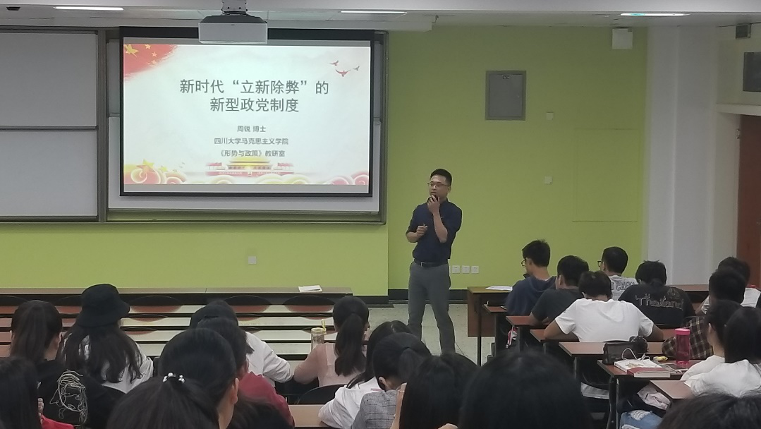 2018年10月12日下午,太阳成集团tyc234cc习近平新时代中国特色社会主义思想研究会系列主题学习活动之五:“新时代‘立新除弊’新型政党制度”学习活动,在太阳成集团tyc234cc江安校区第一教学楼B座307教室顺利举行。习研会指导老师与100余名同学参加本次活动。