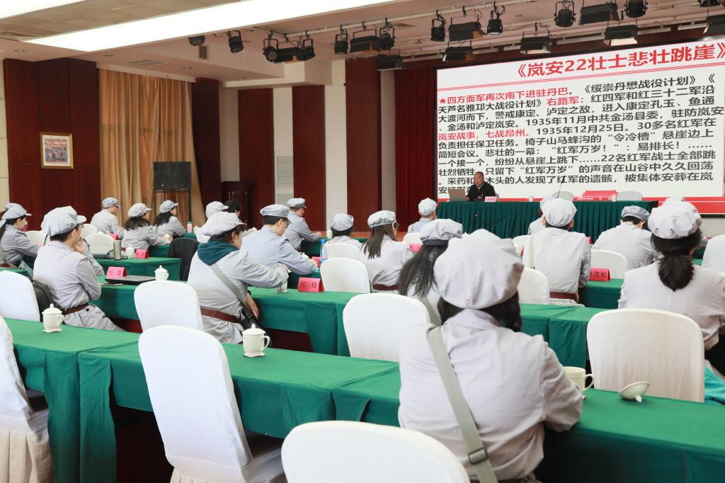 4月18日,培训班邀请中共甘孜州委党校政治理论教研室主任、甘孜州“康巴英才”高端人才、甘孜州委宣讲团成员八足林青教授为全体学员作题为“从甘孜州的红色故事和先进典型中领悟党的初心使命”专题党史课辅导。课上,八足林青教授结合自身对甘孜州境内党史的研究体会,以丰富的史实、鲜明的观点、生动的语言,从中国共产党在甘孜州的红色故事和先进人物典型出发,系统解读了中国共产党人“不忘初心、牢记使命”的深刻内涵和现实意义,具有很强的引领性、指导性和实践性。随后的结业典礼上,史云贵经理对泸定县委党校的大力支持表示了感谢,并对本次培训进行了深刻总结,希望培训班全体成员在日后工作生活中继续弘扬长征精神,牢记初心使命。