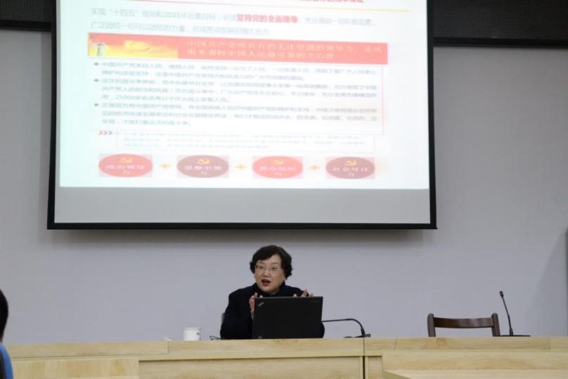 姜晓萍书记围绕十九届五中全会基本情况、学习贯彻五中全会精神的重点与要求、贯彻落实五中全会精神、实现高等教育的高质量发展几个方面展开解读。通过视频展示、案例分享,姜晓萍书记深刻又不失幽默的讲座风格让同学们了解到在2020年这个特殊的历史节点上十九届五中全会召开的重要意义与公共管理学科在如此历史节点上的发展方向与发展要求。