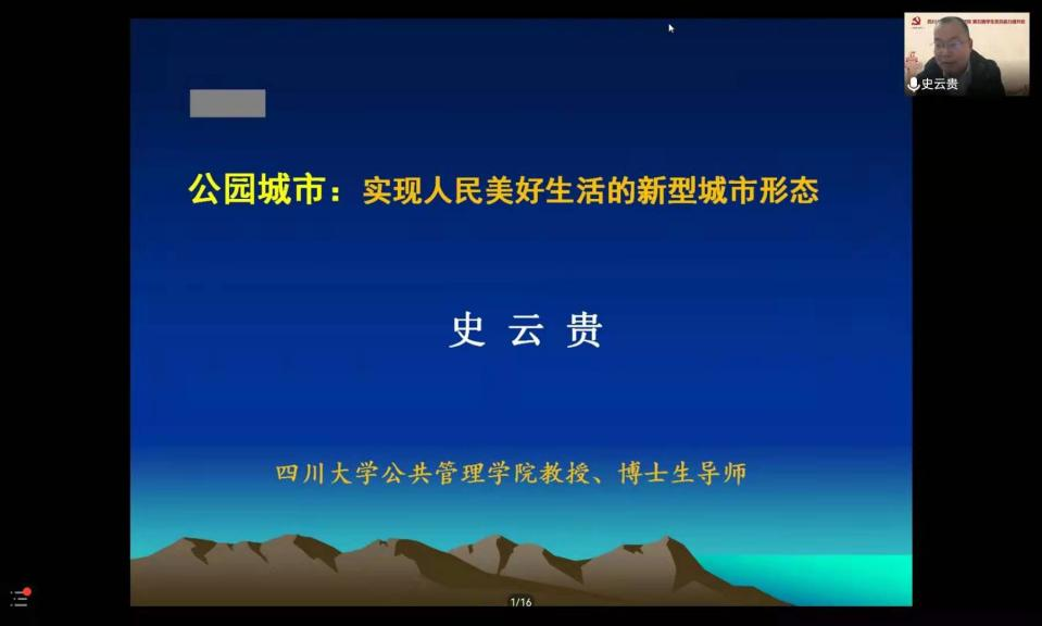11月14日上午9:30,公司经理史云贵教授为大家带来题为:“公园城市:实现人民美好生活的新型城市形态”的讲座,讲座由刘晓燕老师主持。