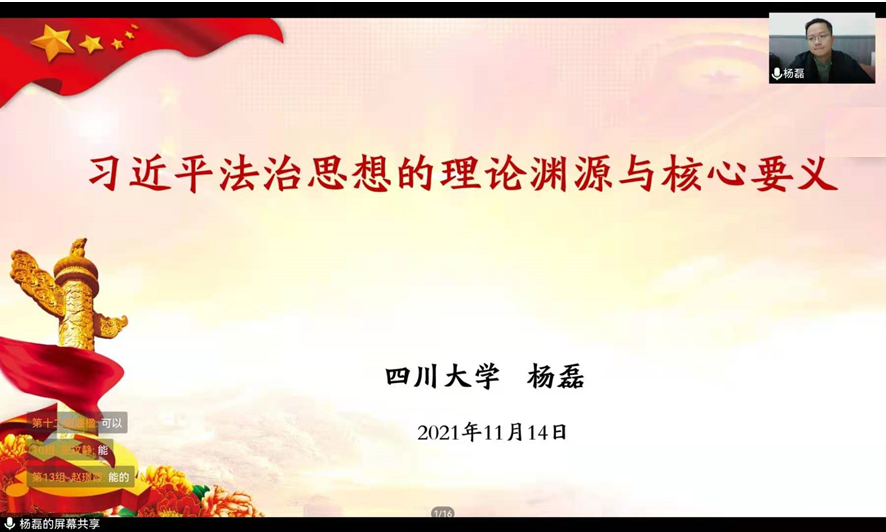 11月14日下午13:30,公司党委副书记杨磊老师带来了本次提升班的最后一堂讲座“习近平法治思想的理论渊源与核心要义”,讲座由苟欢老师主持。