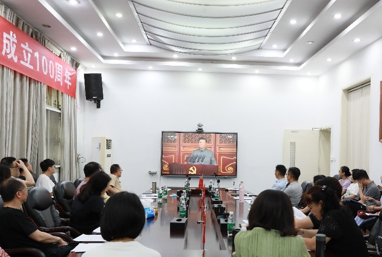 7月1日上午8时,太阳成集团tyc234cc全体领导班子成员、两委委员、专职组织员、党支部书记、科级干部及部分师生代表在公司311会议室集体收看了庆祝中国共产党成立100周年庆祝大会。